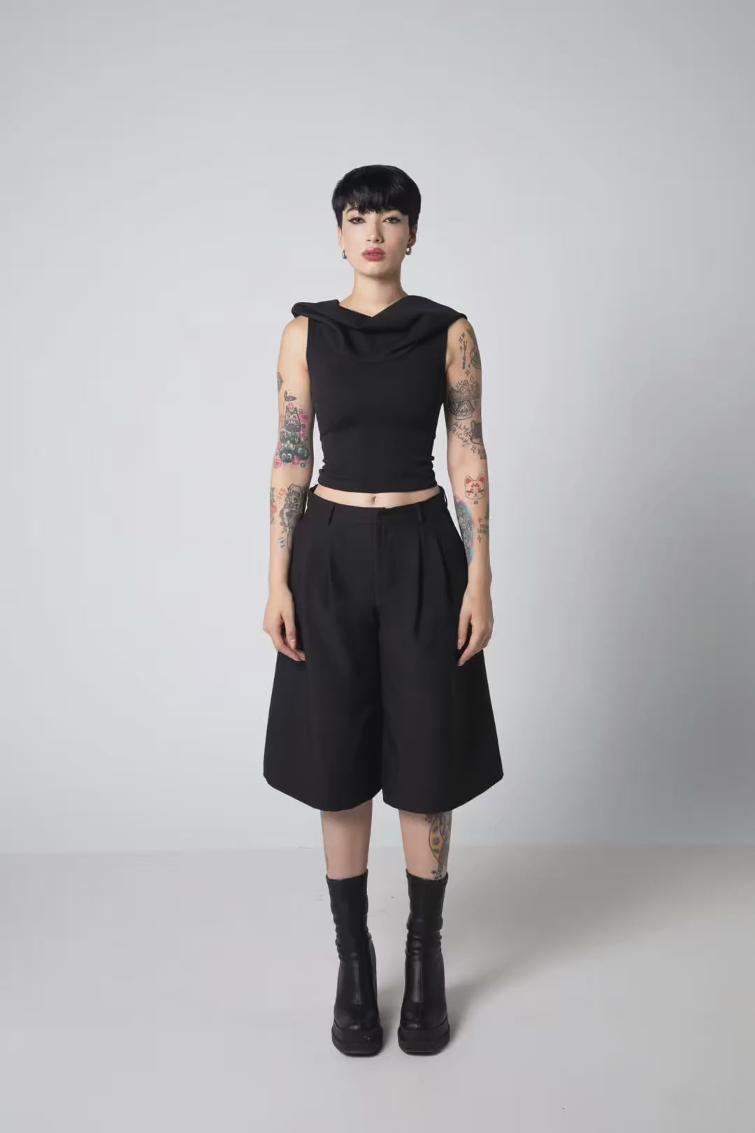 Pleated Culotte Pants – Skirted Cropped Trousers in Recycled Fabric