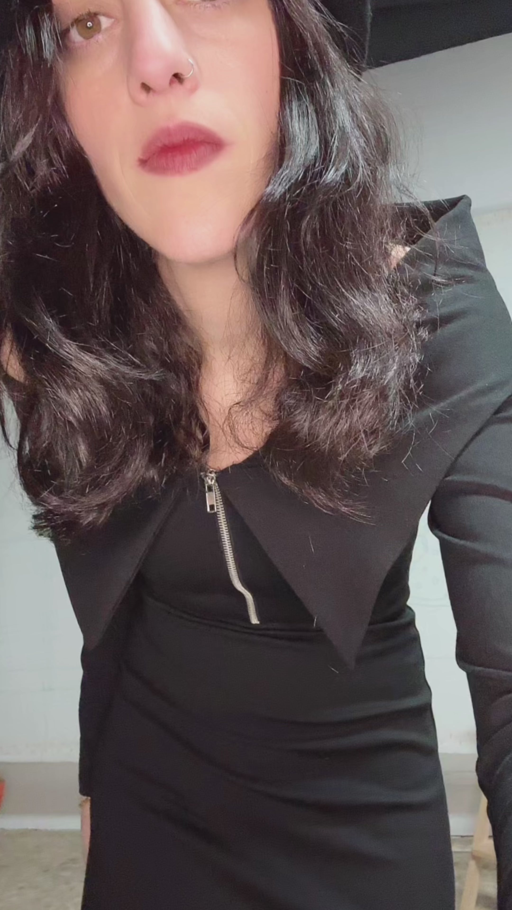 Tags: bardot dress, off shoulder black dress, zipper neck cocktail dress, fit and flare ponte dress, gothic party outfit, alternative elegant fashion, made in Spain